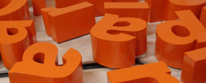 Letras de ACM podem ser usadas para sinalização interna e externa.